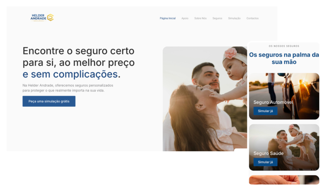 Design profissional com estrutura estratégica pensada para guiar o utilizador.
